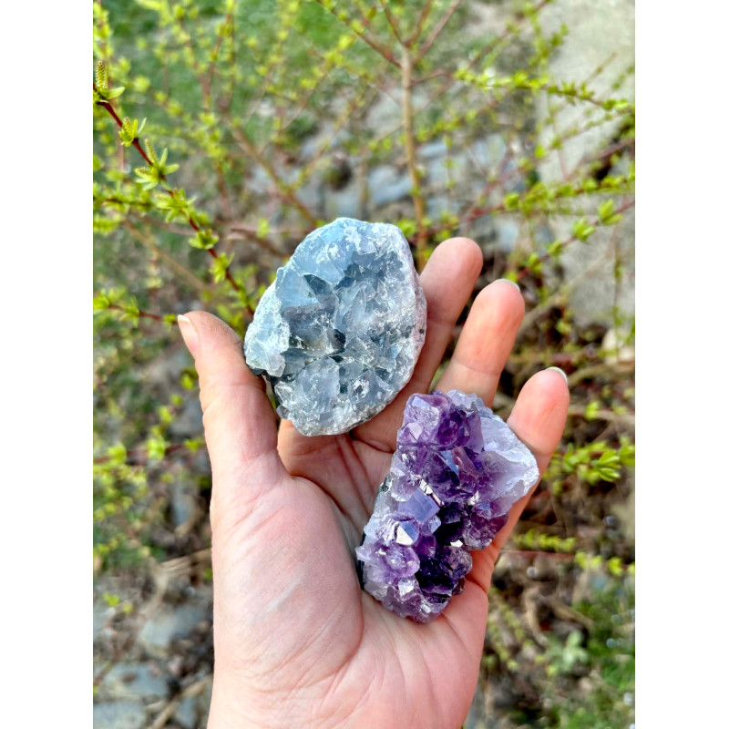 Drúza, srostlé krystaly minerálu v jednom celku. Tyto neopracované surové minerály mají největší množství skryté energie.