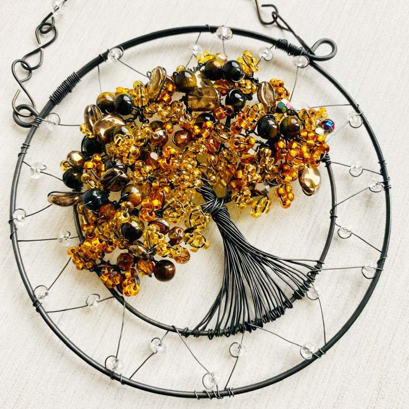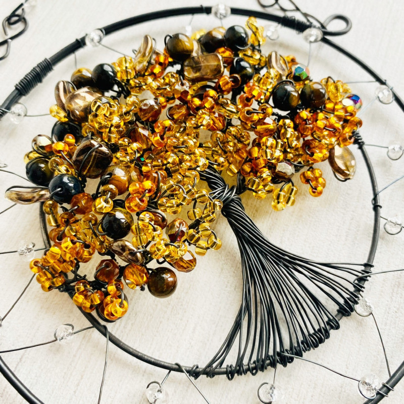Drátovaný Strom života s minerálem tygřím okem, harmonizační ochranná dekorace Vašeho Domova.