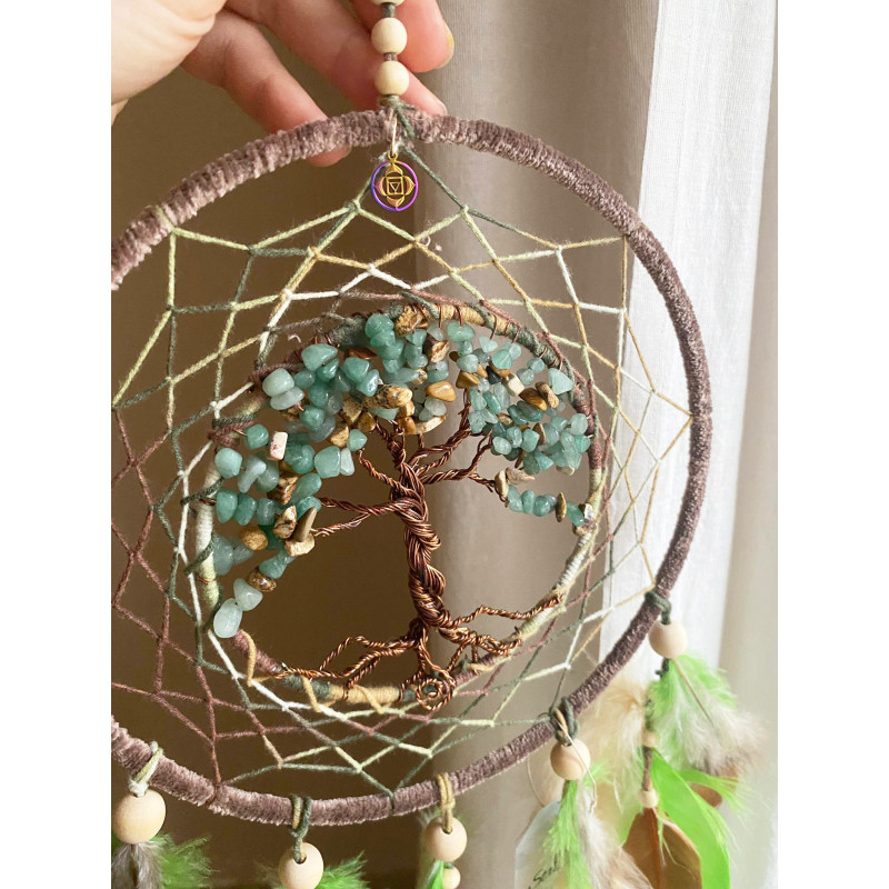 Posvátný Strom života lapač snů, jež je zrcadlem vnímání sama sebe, takoví jací jsme. I když nejsme dokonalí, jako celek jsme nádherní. Křehcí, ale silní. Polarity tvoří harmonii. S čakrou Máládhárou - život znamená vědomí a vědomí stále usiluje o vývoj. V kořenech je spirála.