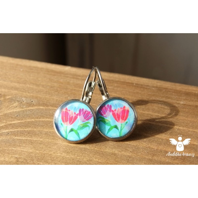 Vhodné pro alergiky. Jemný motiv tulipánů, boho vílí jarní náušničky.