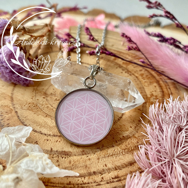 Ocelové náušnice Květ Života s broušeným růženínem v pryskyřici. Symbol pozvedává naše podvědomí na vyšší úroveň do kontaktu s vyšším věděním. Sjednocuje ducha, mysl a srdce.