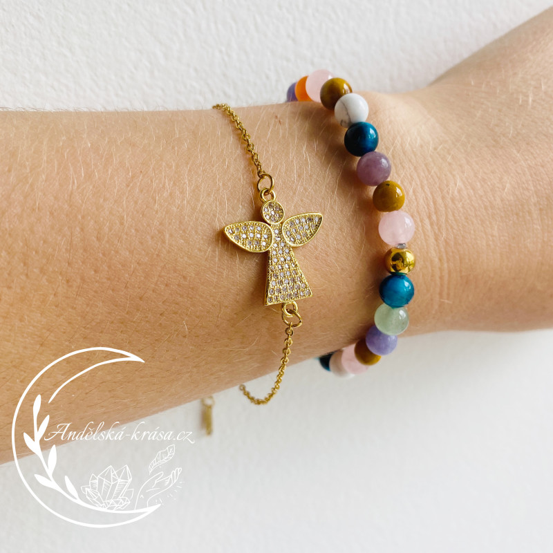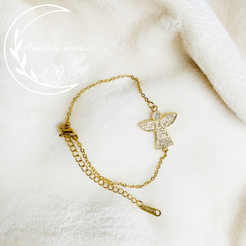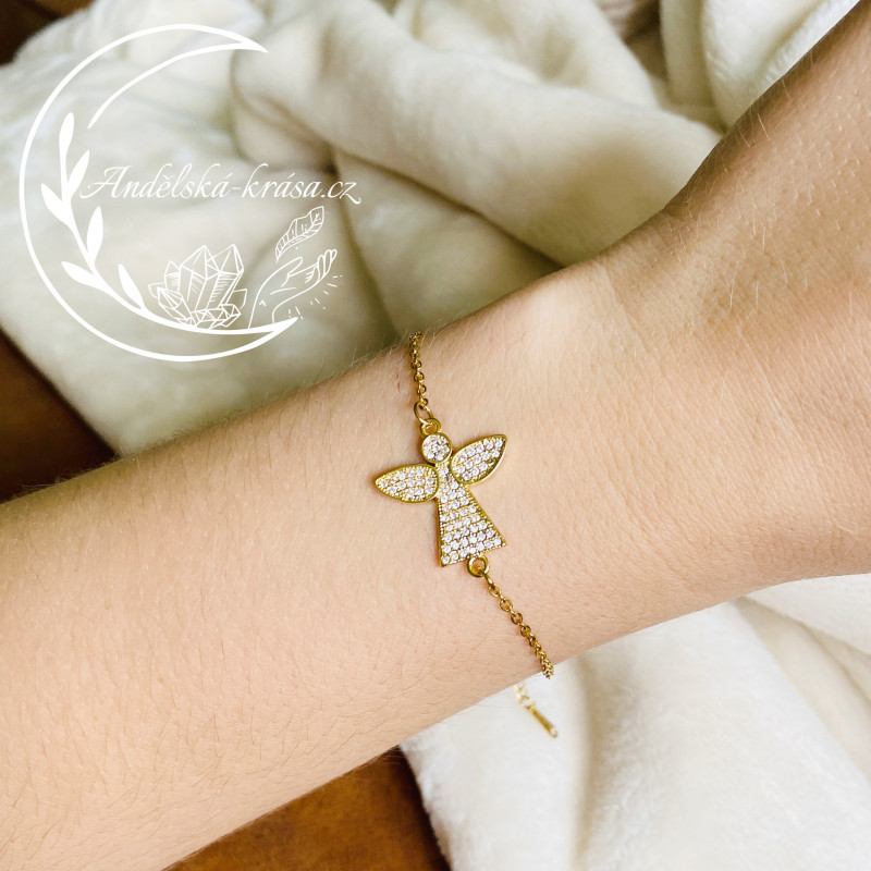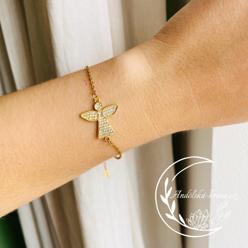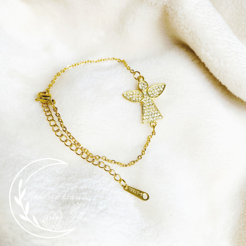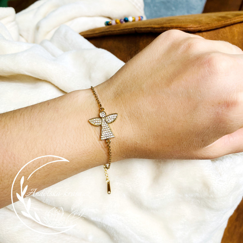Ochranný náramek s jemným řetízkem a zirkonovým andílkem v elegantním provedení.