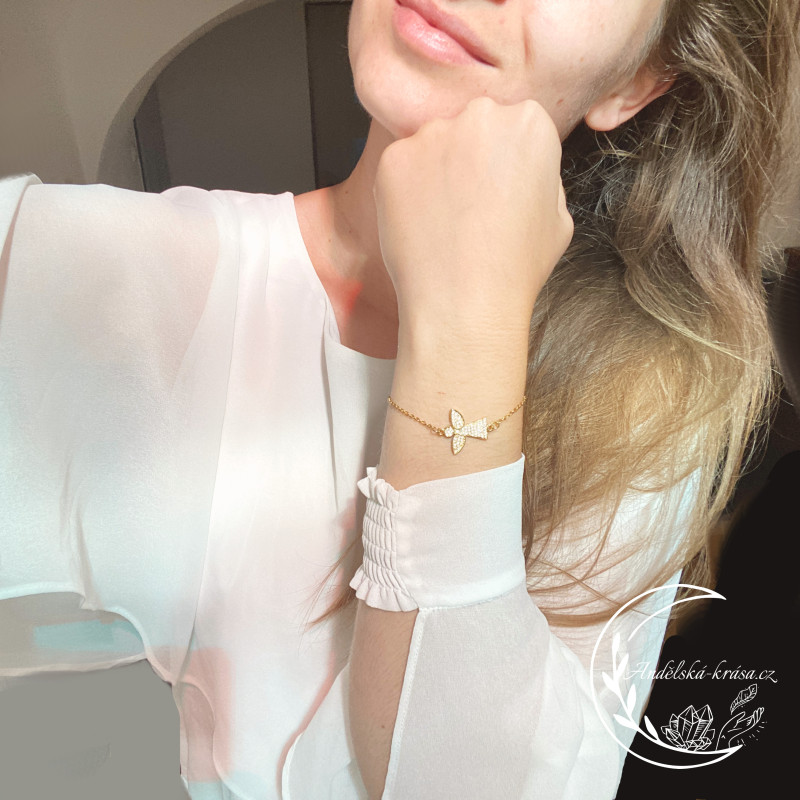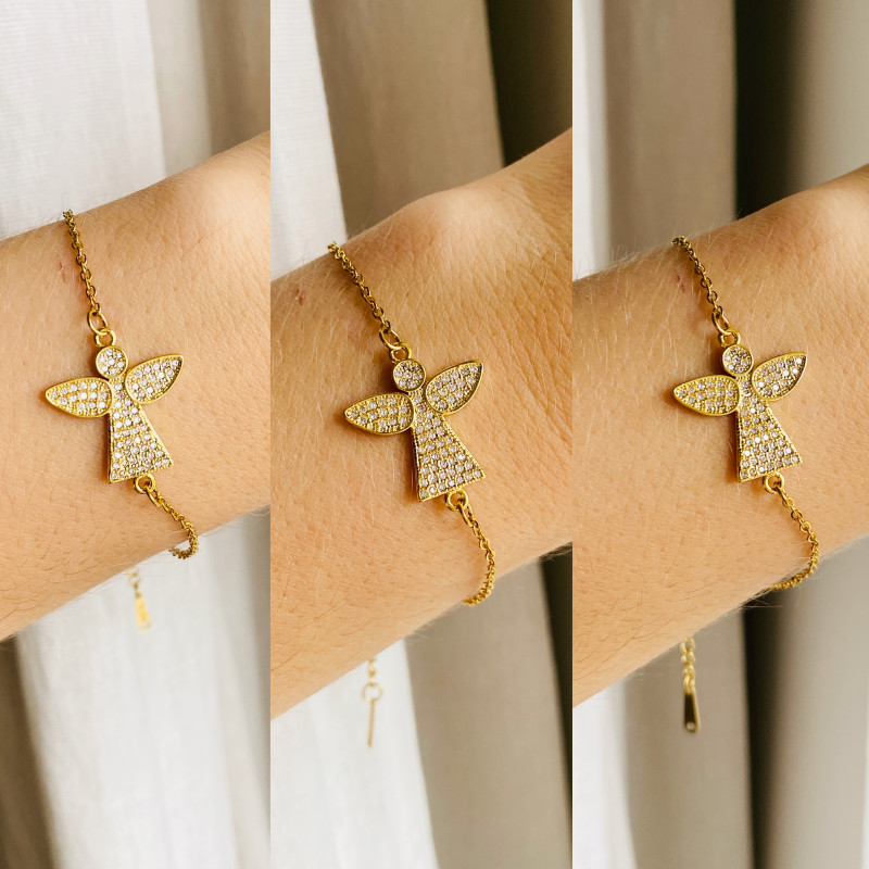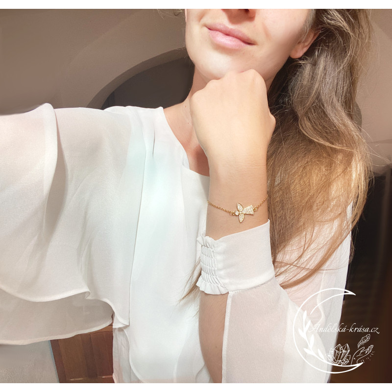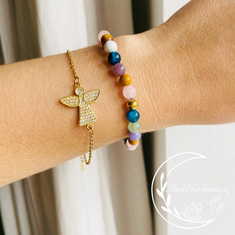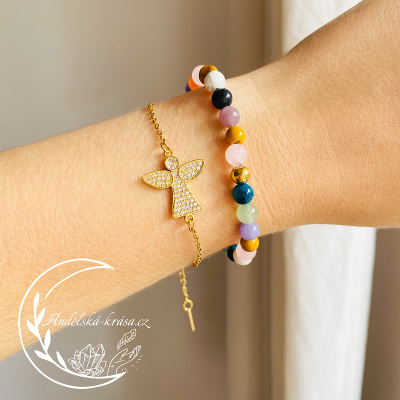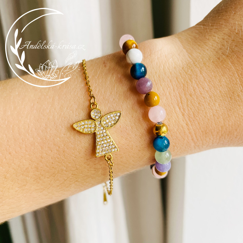 Ochranný náramek s jemným řetízkem a zirkonovým andílkem v elegantním provedení.