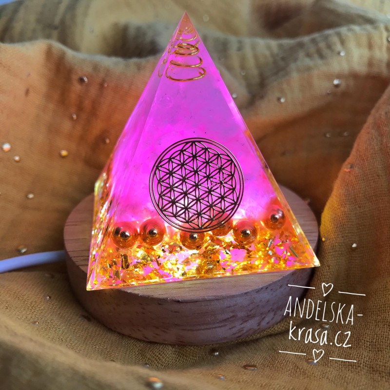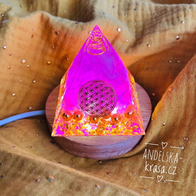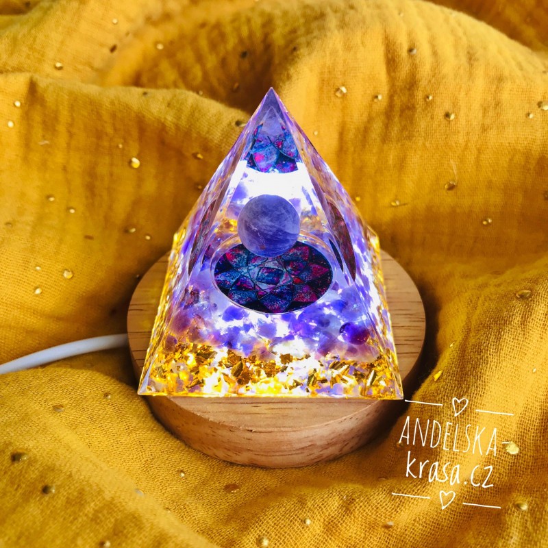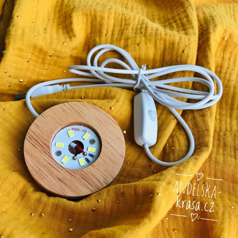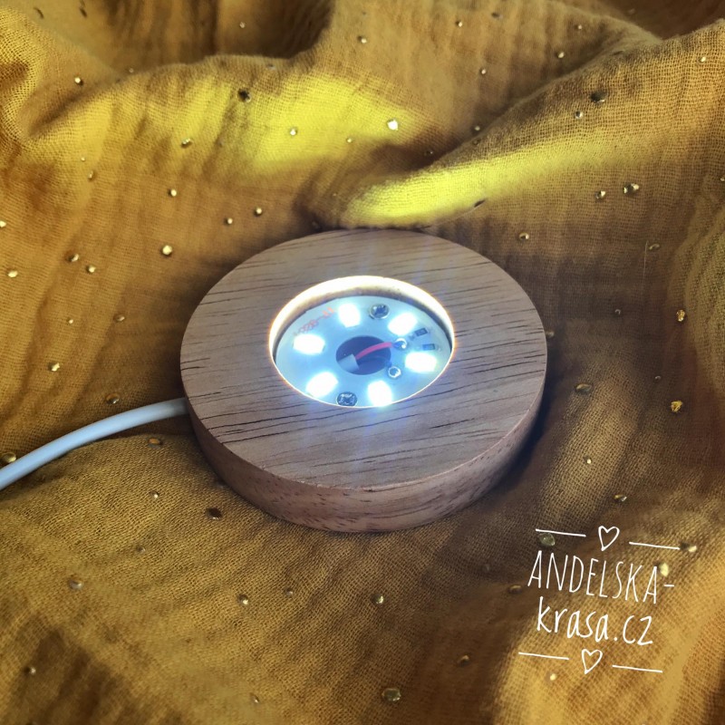 Dřevěná svítící podložka s LED světly pro prosvícení orgonitků.Zvýrazní barvy a umocní magičnost orgonitku za tmy.