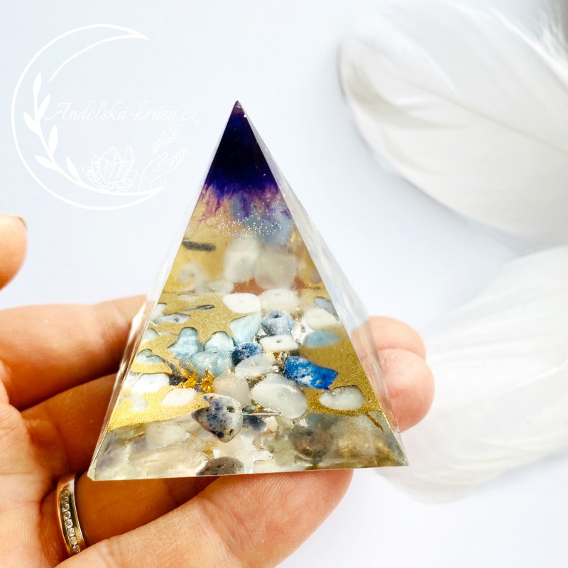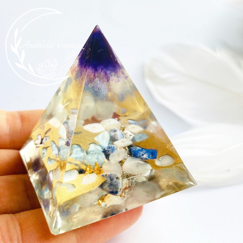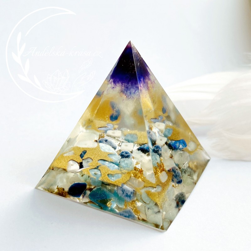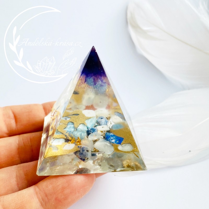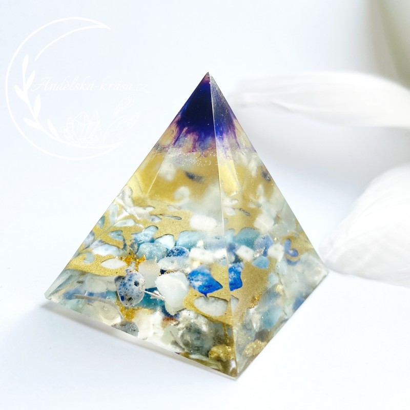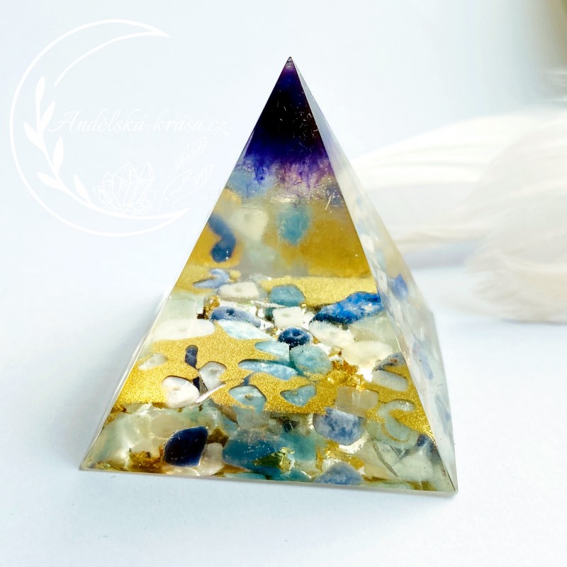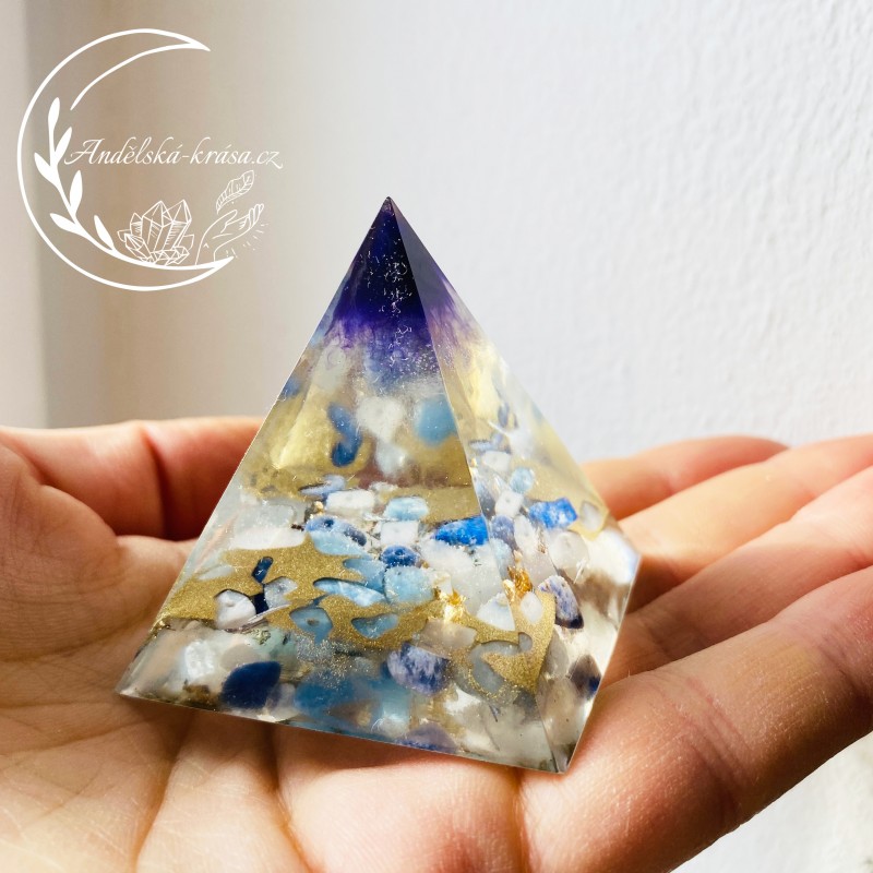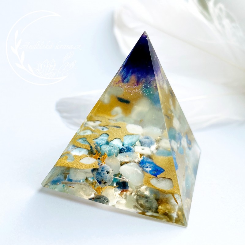Energetická orgonitová pyramida přinášející harmonii, vnitřní klid a uvolnění. Rozpouští bloky a pomáhá v sebevyjadřování. Prozáří Váš Domov laskavou, čerstvou energií a naplní Vaše srdce láskou. Nabíjí energií, očišťuje nás i domov od negativních energií a patogenních zón.
