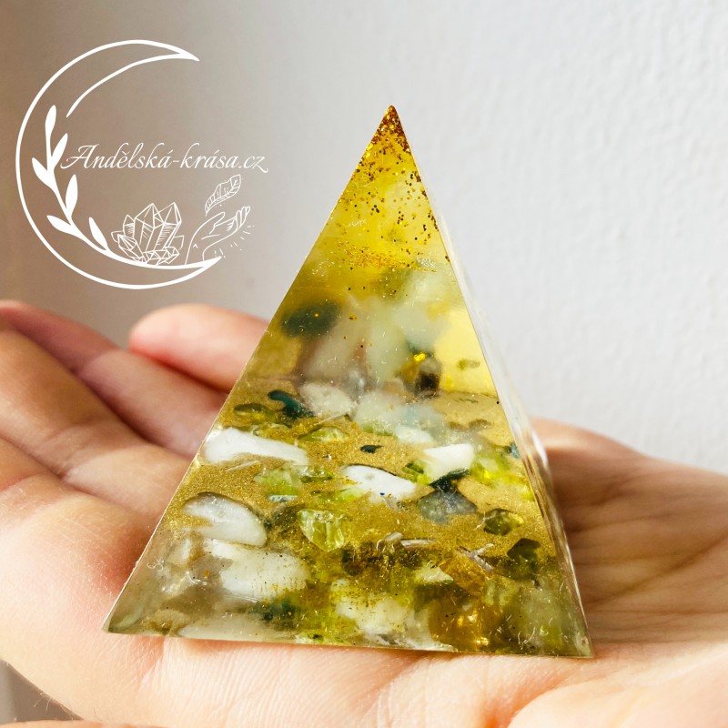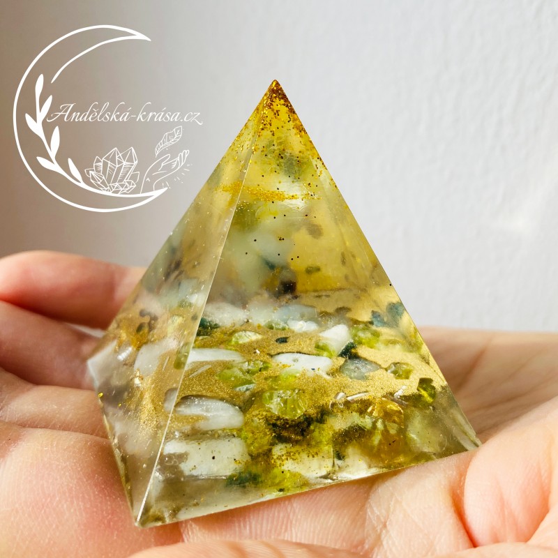 Pyramida je symbol všech kosmických sil, symbolem věčnosti a ochrany. Krystaly křišťálu, v něm obsažené, vynikají ochrannou magickou silou. Pyramidy vstřebávají, shromažďují a přeměňují kosmickou energii a informace. Tuto soustředěnou a harmonizovanou energii spolu s informacemi dále vyzařují. Působí tak na částice, atomy, molekuly a krystalové struktury umístěné v jejich dosahu. Orgonitová pyramida zregeneruje vaše síly, posílí vaše zdraví i psychiku. Vhodné použití i jako ochranný talisman. Má pozitivní vlivu na okolí a neutralizuje elektromagnetické záření.
