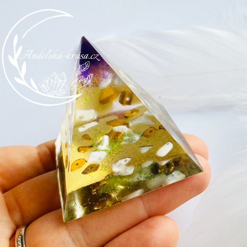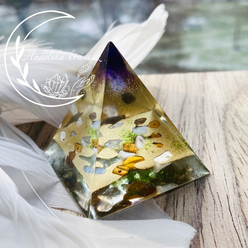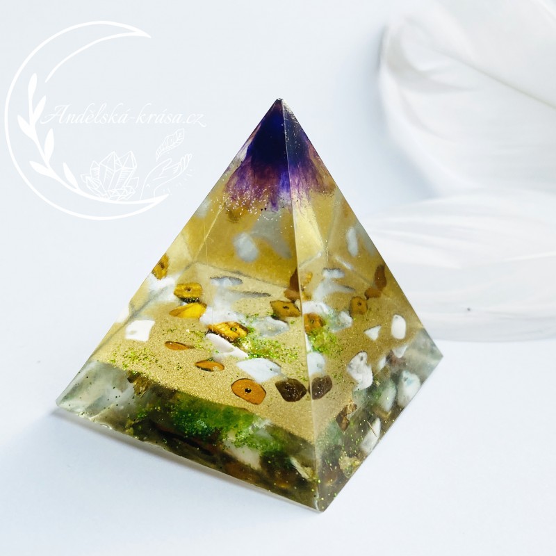 Pyramida je symbol všech kosmických sil, symbolem věčnosti a ochrany. Krystaly křišťálu, v něm obsažené, vynikají ochrannou magickou silou. Pyramidy vstřebávají, shromažďují a přeměňují kosmickou energii a informace. Tuto soustředěnou a harmonizovanou energii spolu s informacemi dále vyzařují. Působí tak na částice, atomy, molekuly a krystalové struktury umístěné v jejich dosahu. Orgonitová pyramida zregeneruje vaše síly, posílí vaše zdraví i psychiku. Vhodné použití i jako ochranný talisman. Má pozitivní vlivu na okolí a neutralizuje elektromagnetické záření.