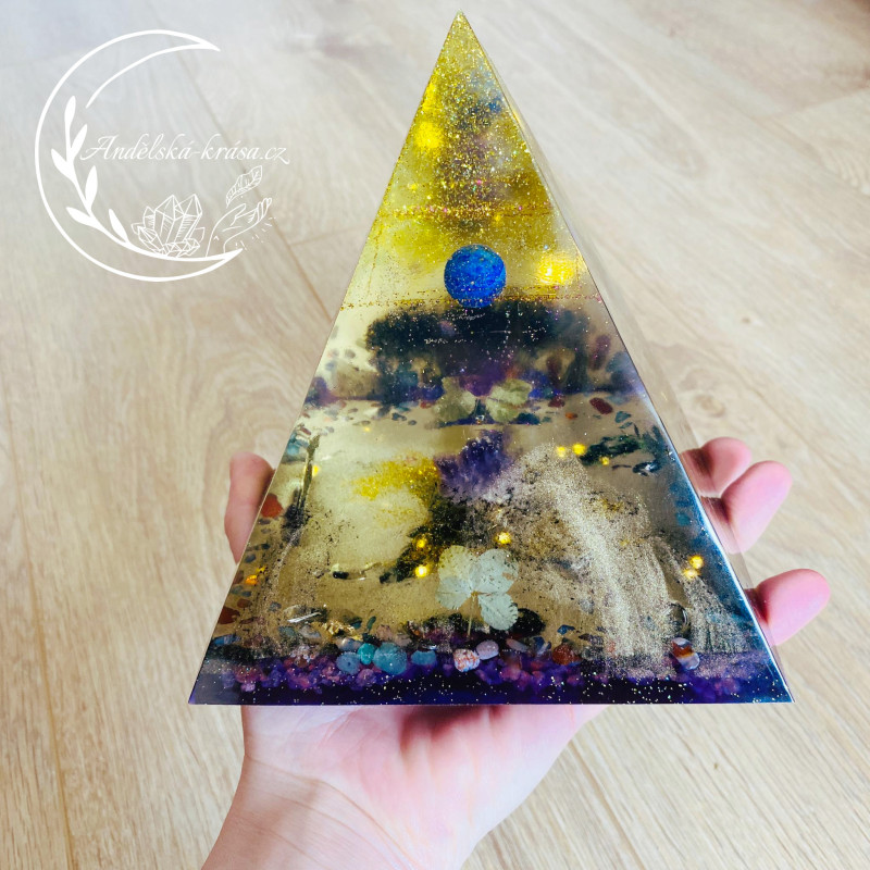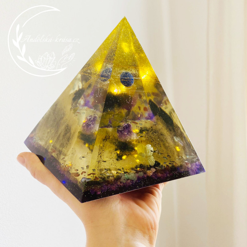 Pyramida je symbol všech kosmických sil, symbolem věčnosti a ochrany. Krystaly křišťálu, v něm obsažené, vynikají ochrannou magickou silou. Pyramidy vstřebávají, shromažďují a přeměňují kosmickou energii a informace. Tuto soustředěnou a harmonizovanou energii spolu s informacemi dále vyzařují. Působí tak na částice, atomy, molekuly a krystalové struktury umístěné v jejich dosahu. Orgonitová pyramida zregeneruje vaše síly, posílí vaše zdraví i psychiku. Vhodné použití i jako ochranný talisman. Má pozitivní vlivu na okolí a neutralizuje elektromagnetické záření.