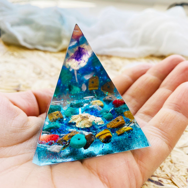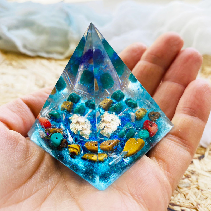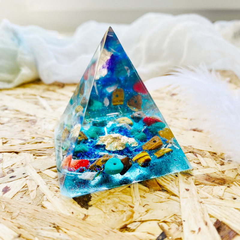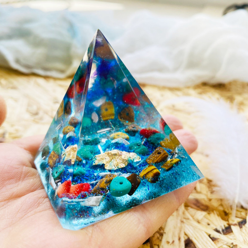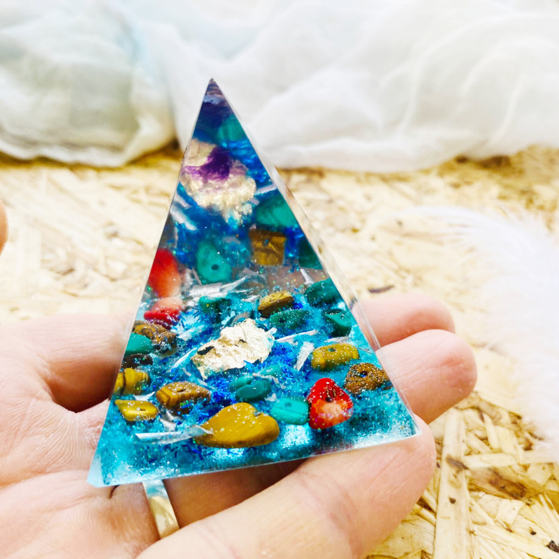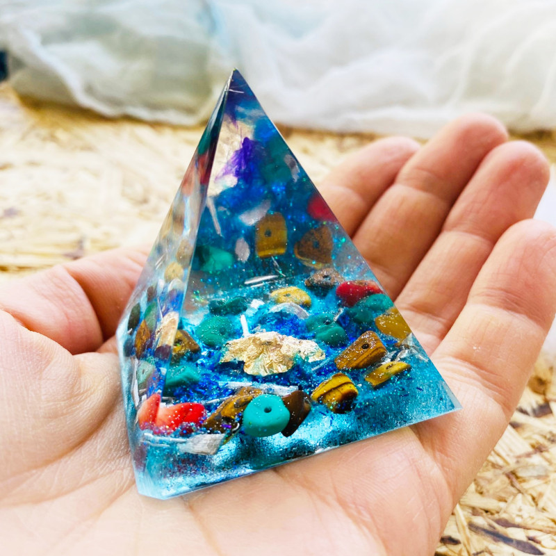 Pyramida je symbol všech kosmických sil, symbolem věčnosti a ochrany. Krystaly křišťálu, v něm obsažené, vynikají ochrannou magickou silou. Pyramidy vstřebávají, shromažďují a přeměňují kosmickou energii a informace. Tuto soustředěnou a harmonizovanou energii spolu s informacemi dále vyzařují. Působí tak na částice, atomy, molekuly a krystalové struktury umístěné v jejich dosahu. Orgonitová pyramida zregeneruje vaše síly, posílí vaše zdraví i psychiku. Vhodné použití i jako ochranný talisman. Má pozitivní vlivu na okolí a neutralizuje elektromagnetické záření.