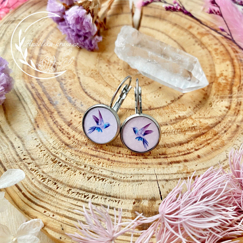 Ocelové náušnice a náhrdelník Květ Života s kolibříkem v pryskyřici. Symbol pozvedává naše podvědomí na vyšší úroveň do kontaktu s vyšším věděním. Sjednocuje ducha, mysl a srdce.