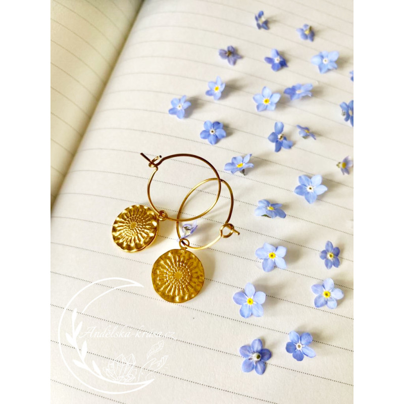 Půvabné náušnice ve zlaté barvě z chirurgické oceli - boho symbol Slunce.