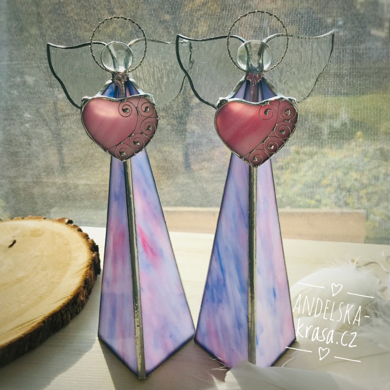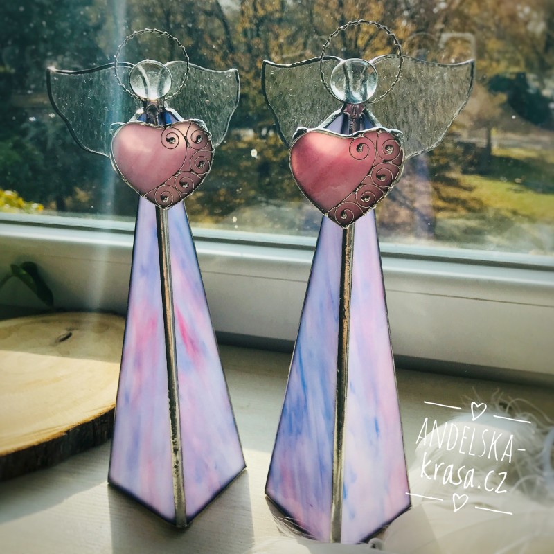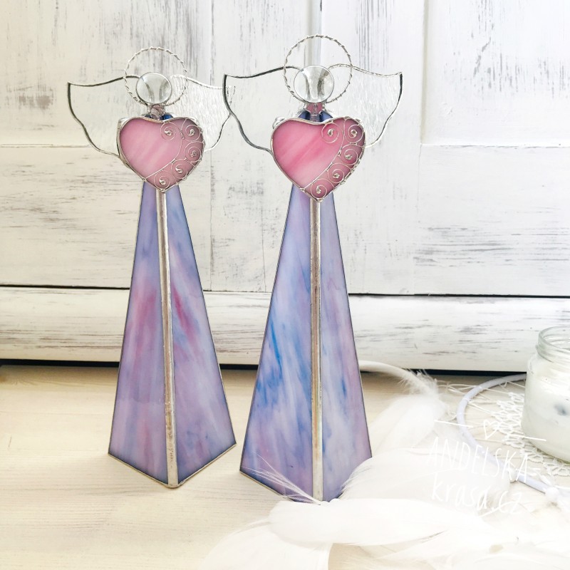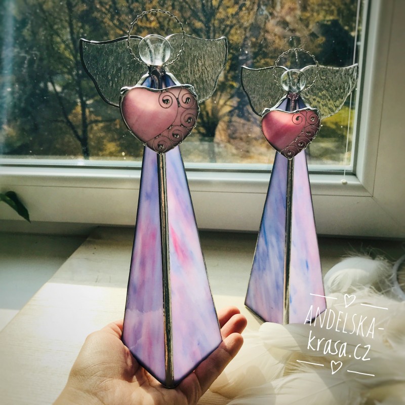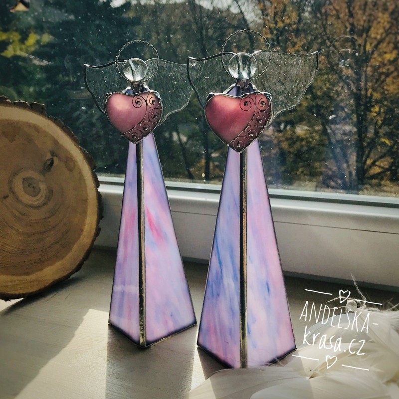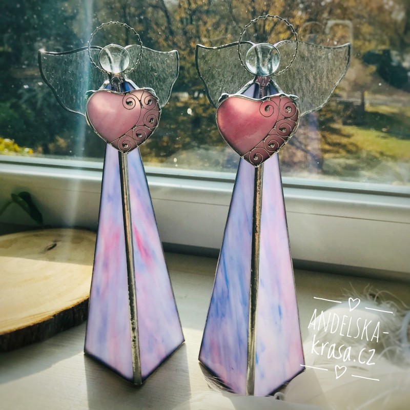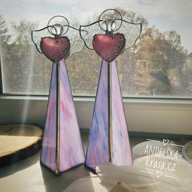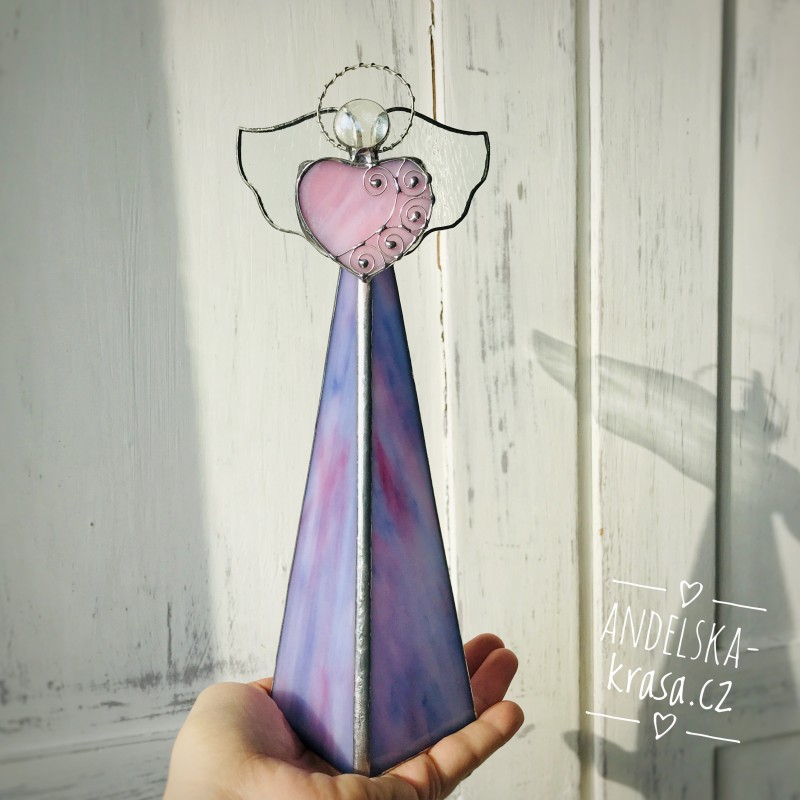 Božský svícen, fialkový anděl se srdíčkem z vitráže.