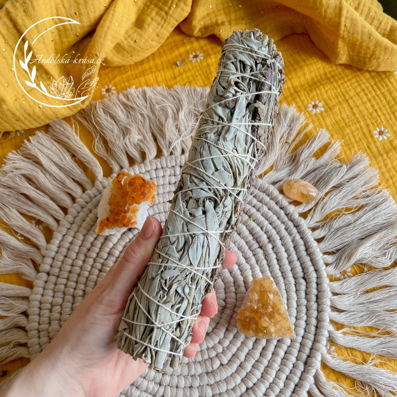 Posvátná bylina používaná šamany po celá staletí na očistné obřady. Tímto svazkem vyčistíte prostředí ve kterém žijete i mysl se všemi její myšlenkami. Bíla šalvěj má pronikavou ostrou vůni. Vědecký výzkum ukázal, že po spálení této byliny se rozpadlo 94% bakterií v místnosti.